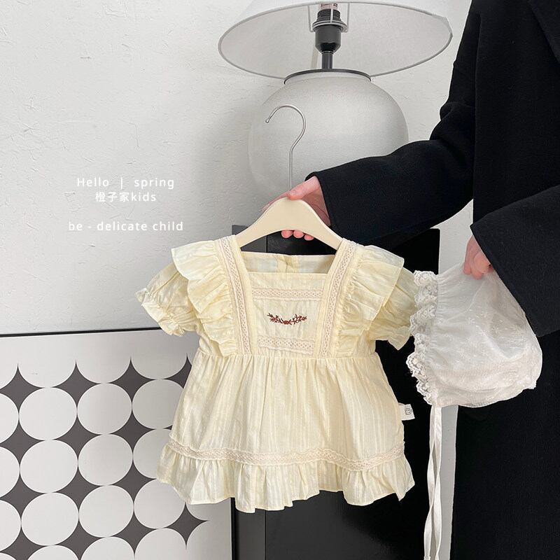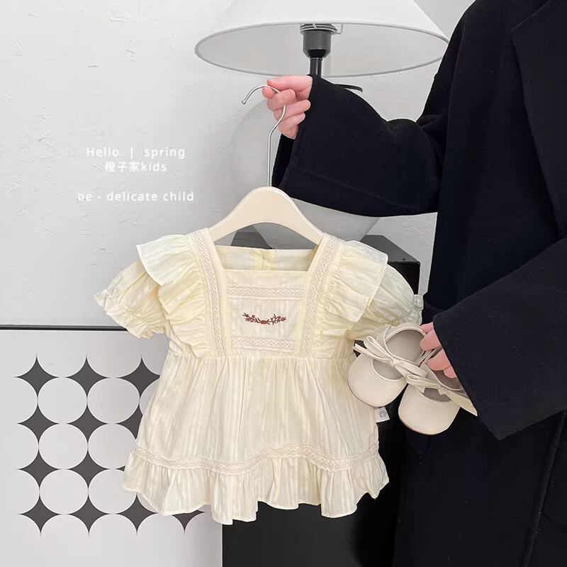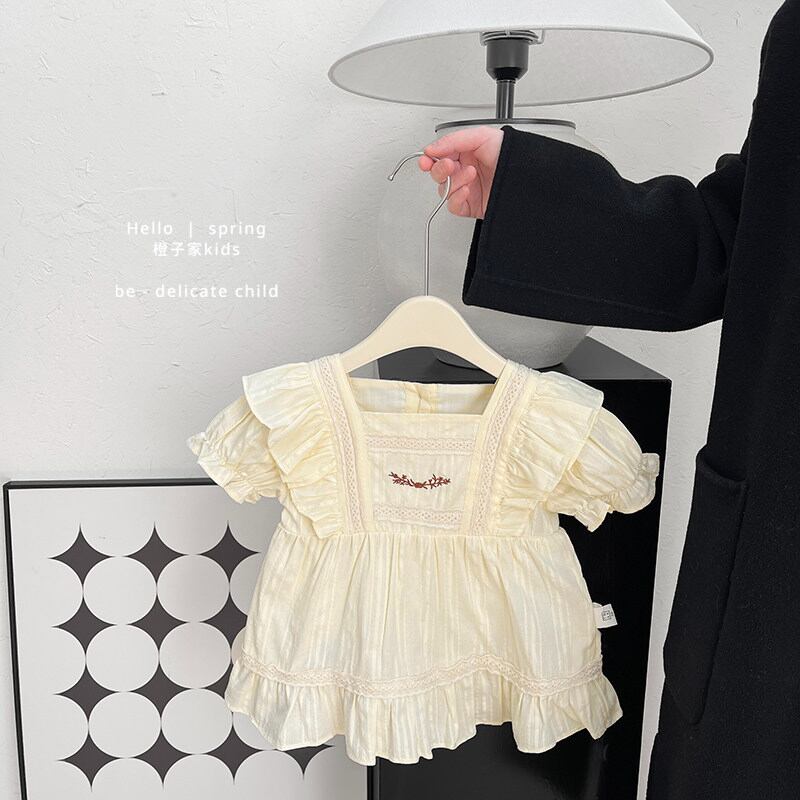 アイボリーカラーのフリルレースワンピース。さりげない刺繍がポイントの上品でスウィートなデザインです。